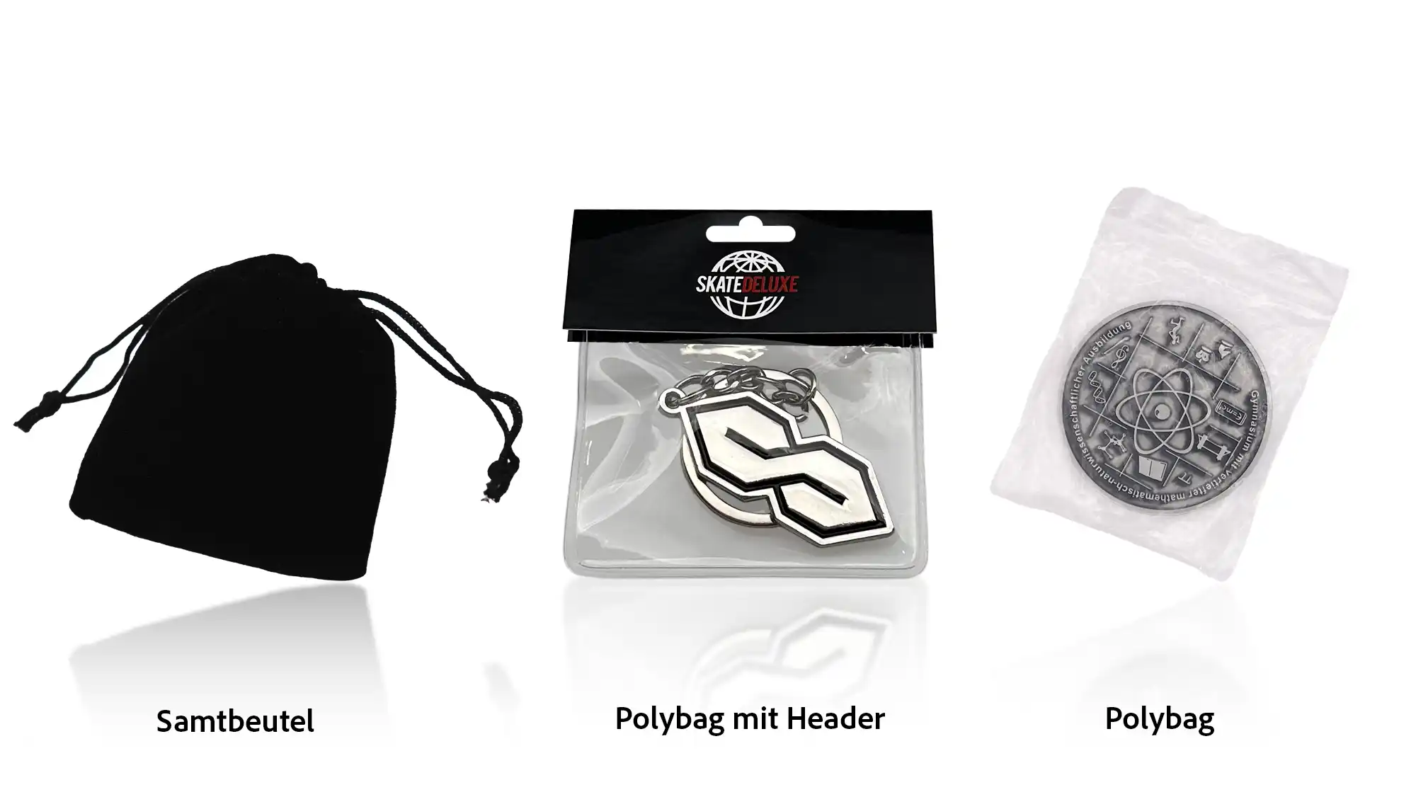 Beutel sind eine flexible und praktische Verpackungsoption – vom luxuriösen Samtbeutel bis hin zur einfachen, transparenten Standardlösung. Sie schützen dein Produkt und können, je nach Ausführung, zusätzlich als Aufbewahrung dienen: