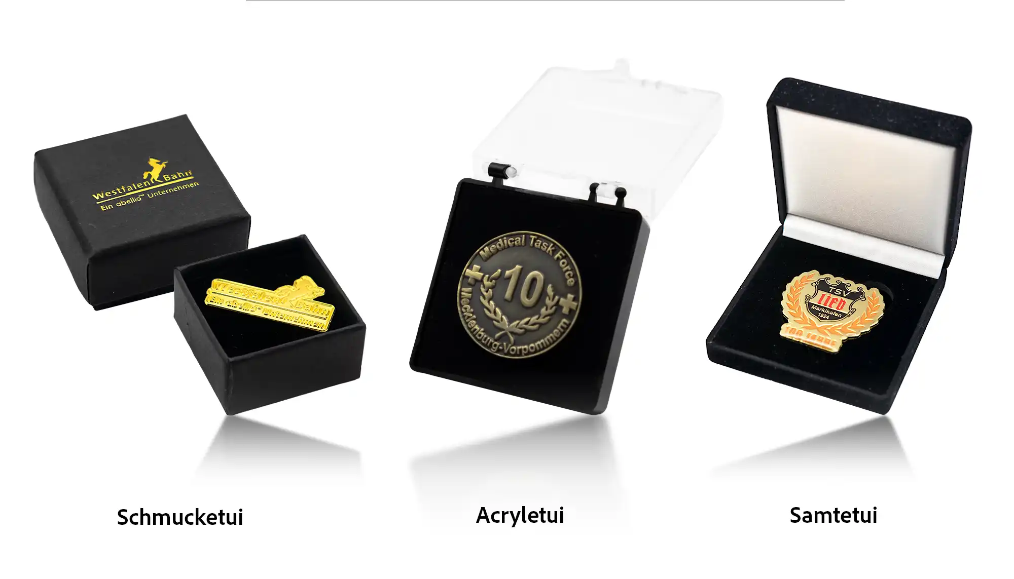 Für den besonderen Auftritt: Das edle Samtetui verleiht deinem Produkt schon beim ersten Anblick eine exklusive Wirkung. Ideal für Auszeichnungen, Medaillen oder Pins, die einen Wow-Moment verdienen.