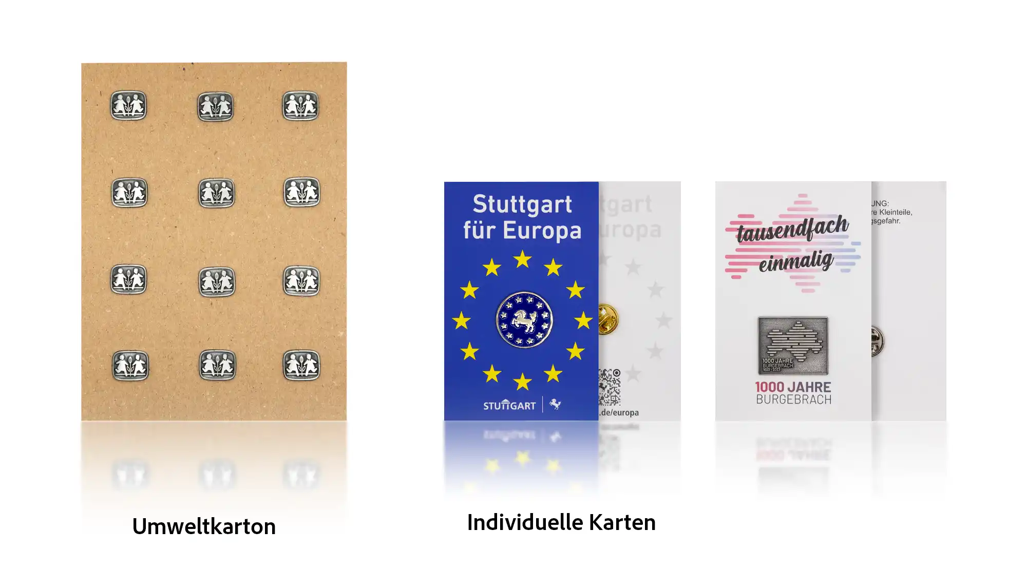 Zu jedem Produkt gehört die passende Verpackung – sei es als Schutz, zur Präsentation oder für den Verkauf. Bei Lieblings Pins kannst du aus verschiedenen Verpackungsvarianten wählen und so genau die Lösung finden, die zu deinem individuellen Produkt passt. Zusätzlich lassen sich die Verpackungen durch Farbe und Veredelung anpassen und noch besser individualisieren.