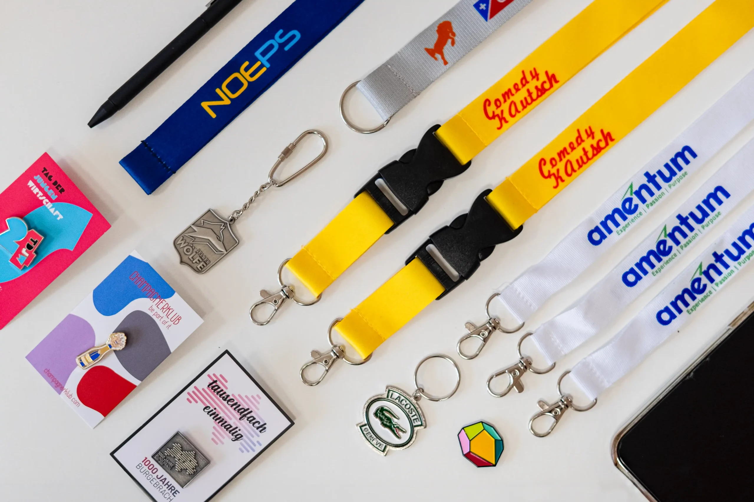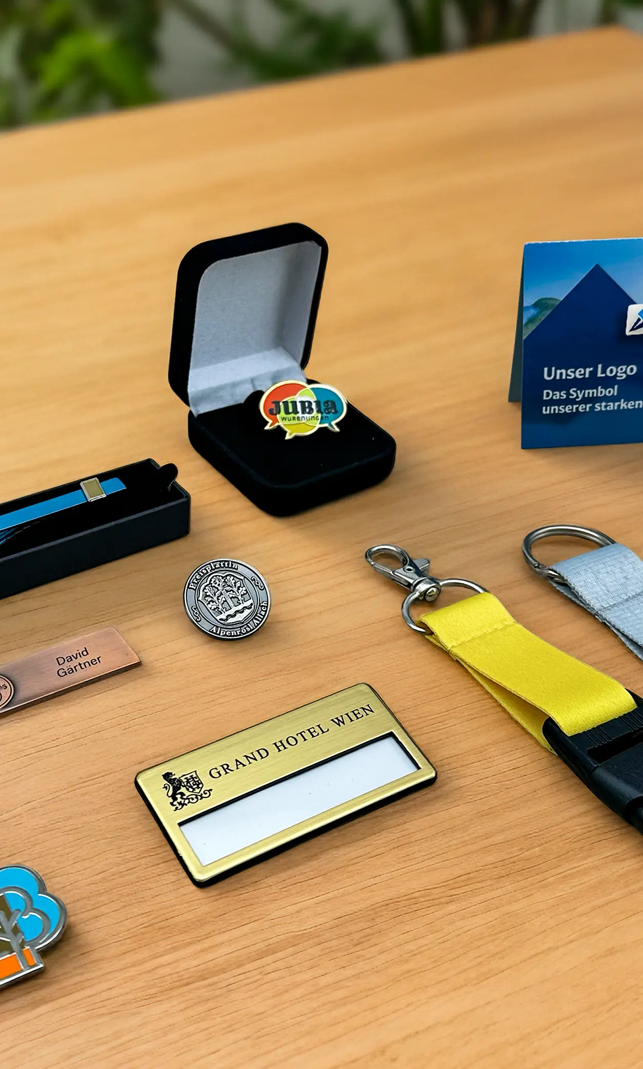 Aus deiner Datei entsteht zunächst ein Prägestempel, mit dem Kupferrohlinge geprägt werden. Danach werden die Farben eingebrannt und die Oberfläche poliert. Zusätzliche Veredelungen machen dein Produkt auf Wunsch einzigartig. Apropos: Manche Produkte gibt es schon ab 20 Stück – perfekt für individuelle Projekte!